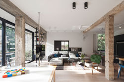 The space is designed for a couple with a child and has the possibility to change the size of the rooms.